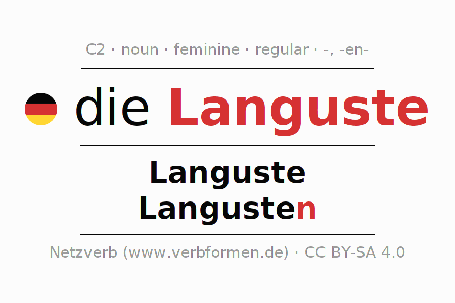 - Plural: die Langusten, der Langusten, den Langusten, die Langusten