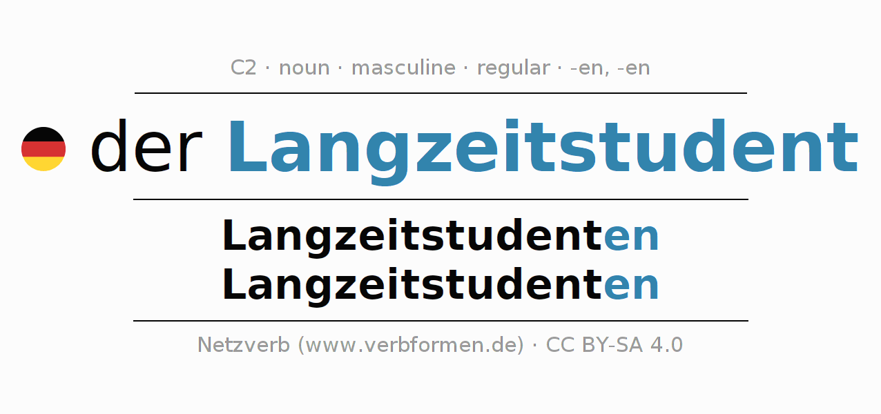 | Nom. | der Langzeitstudent | die Langzeitstudenten |