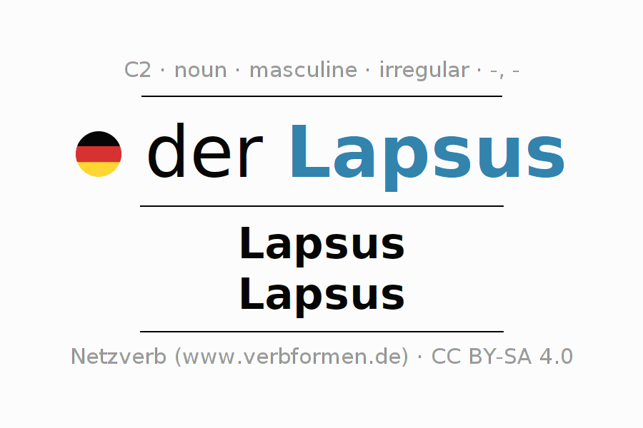 - Singular: der Lapsus, des Lapsus, dem Lapsus, den Lapsus
