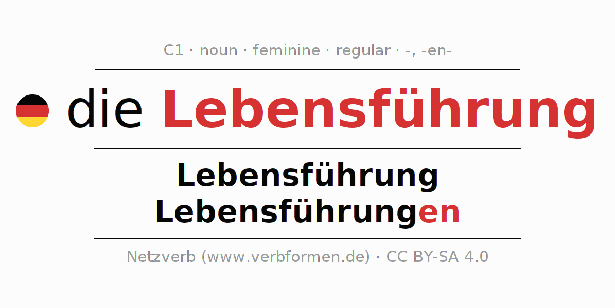 - Singular: die Lebensführung, der Lebensführung, der Lebensführung, die Lebensführung