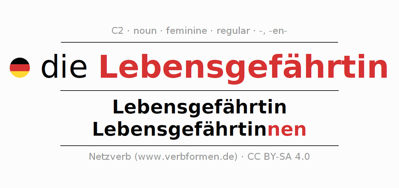 - Singular: die Lebensgefährtin, der Lebensgefährtin, der Lebensgefährtin, die Lebensgefährtin
