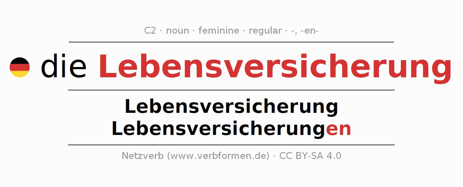 - Singular: die Lebensversicherung, der Lebensversicherung, der Lebensversicherung, die Lebensversicherung