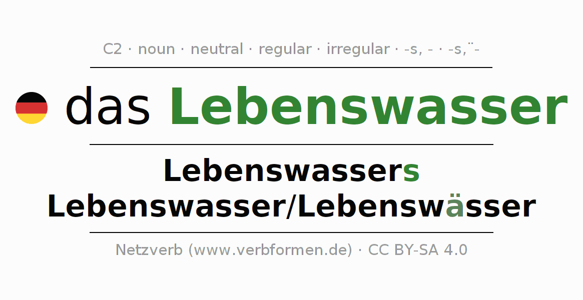 | Nom. | das Lebenswasser | die Lebenswasser/Lebenswässer |