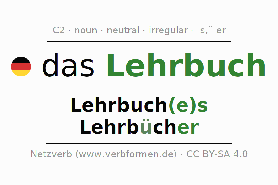- Plural: die Lehrbücher, der Lehrbücher, den Lehrbüchern, die Lehrbücher