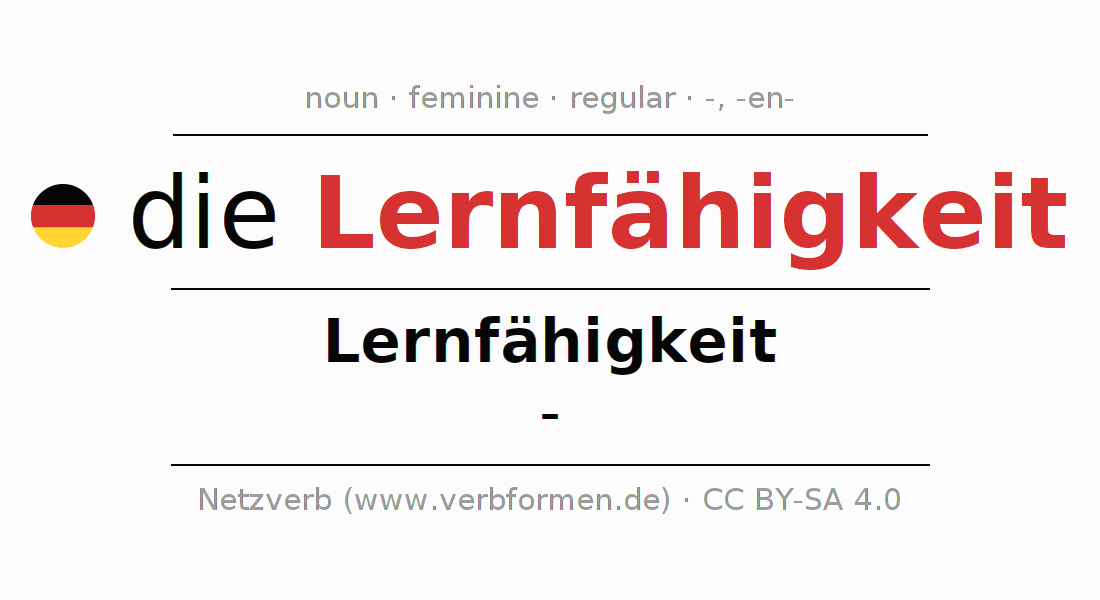- Singular: die Lernfähigkeit, der Lernfähigkeit, der Lernfähigkeit, die Lernfähigkeit