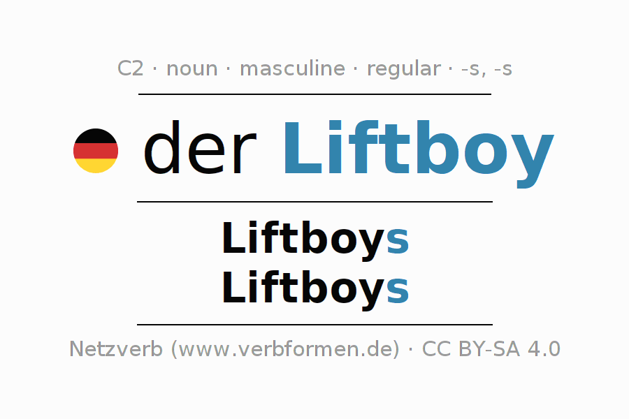 - Plural: die Liftboys, der Liftboys, den Liftboys, die Liftboys