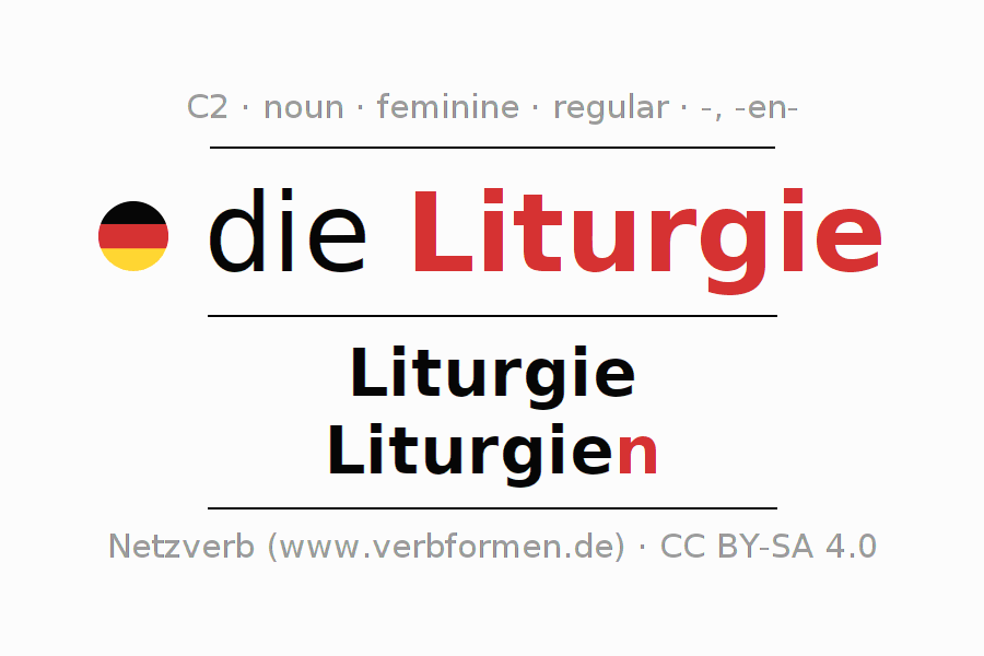 - Singular: die Liturgie, der Liturgie, der Liturgie, die Liturgie