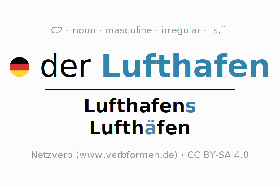 - Singular: der Lufthafen, des Lufthafens, dem Lufthafen, den Lufthafen