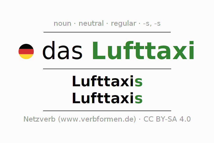 | Nom. | das Lufttaxi | die Lufttaxis |