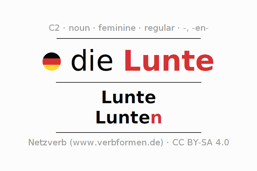 - Singular: die Lunte, der Lunte, der Lunte, die Lunte