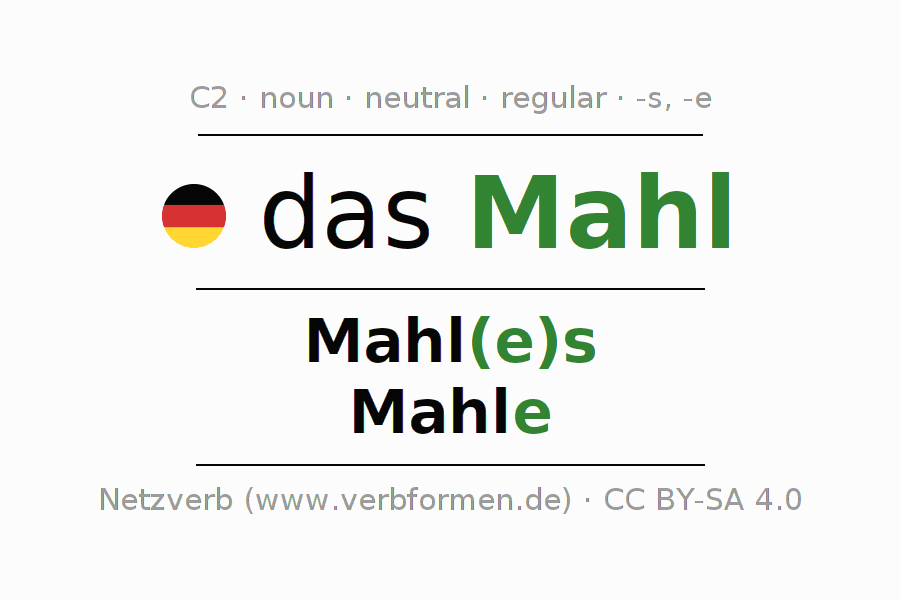 | Dat. | dem Mahl(e) | den Mahlen |
