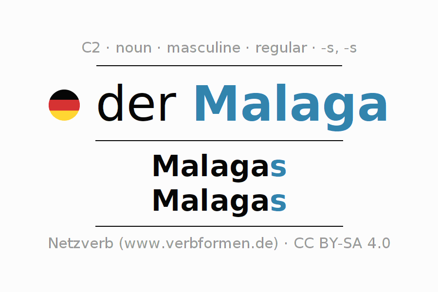 - Singular: der Malaga, des Malagas, dem Malaga, den Malaga