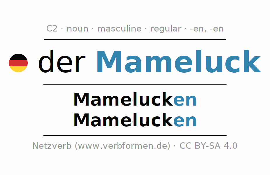 - Singular: der Mameluck, des Mamelucken, dem Mamelucken, den Mamelucken