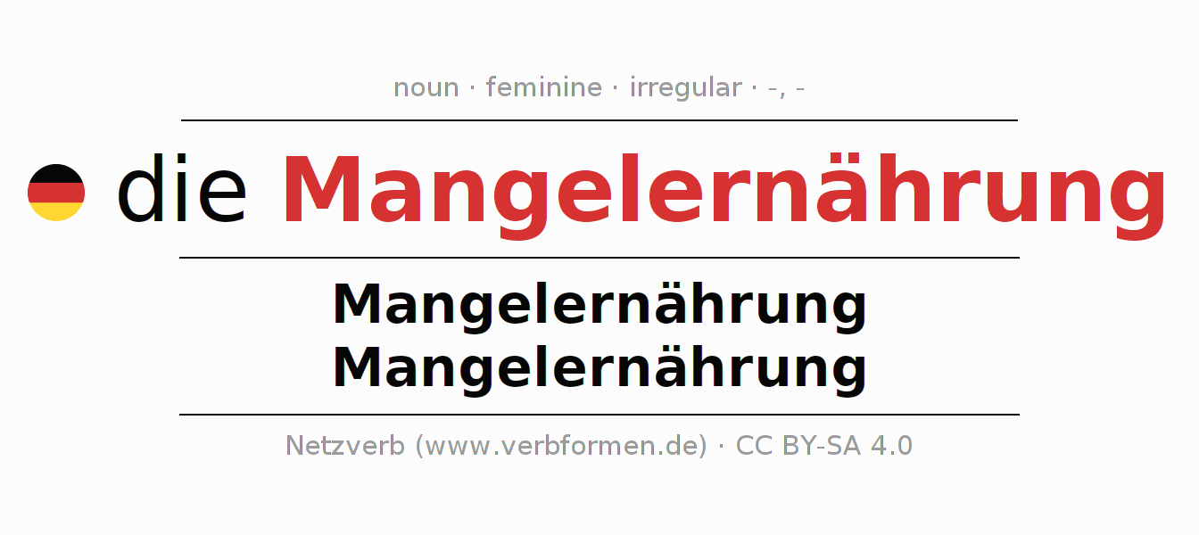 - Singular: die Mangelernährung, der Mangelernährung, der Mangelernährung, die Mangelernährung