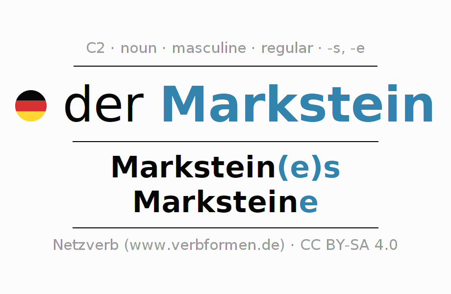 - Singular: der Markstein, des Markstein(e)s, dem Markstein(e), den Markstein