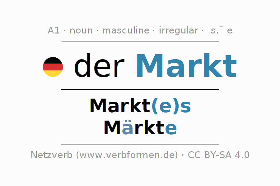 - Plural: die Märkte, der Märkte, den Märkten, die Märkte