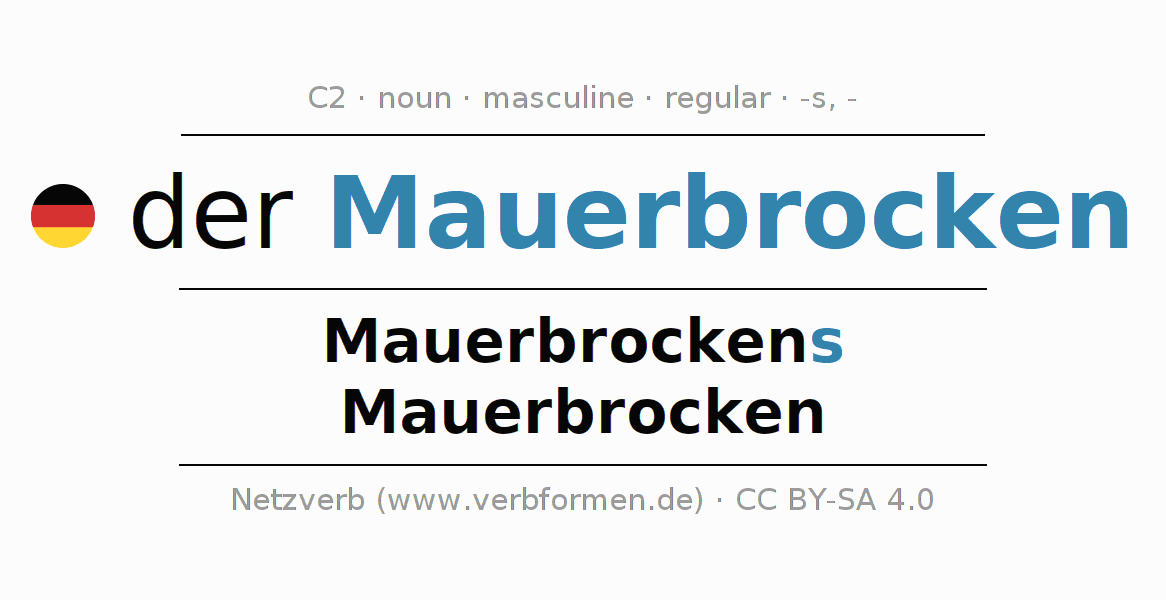 - Singular: der Mauerbrocken, des Mauerbrockens, dem Mauerbrocken, den Mauerbrocken