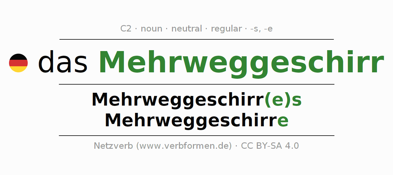 Nom. | das Mehrweggeschirr | die Mehrweggeschirre |