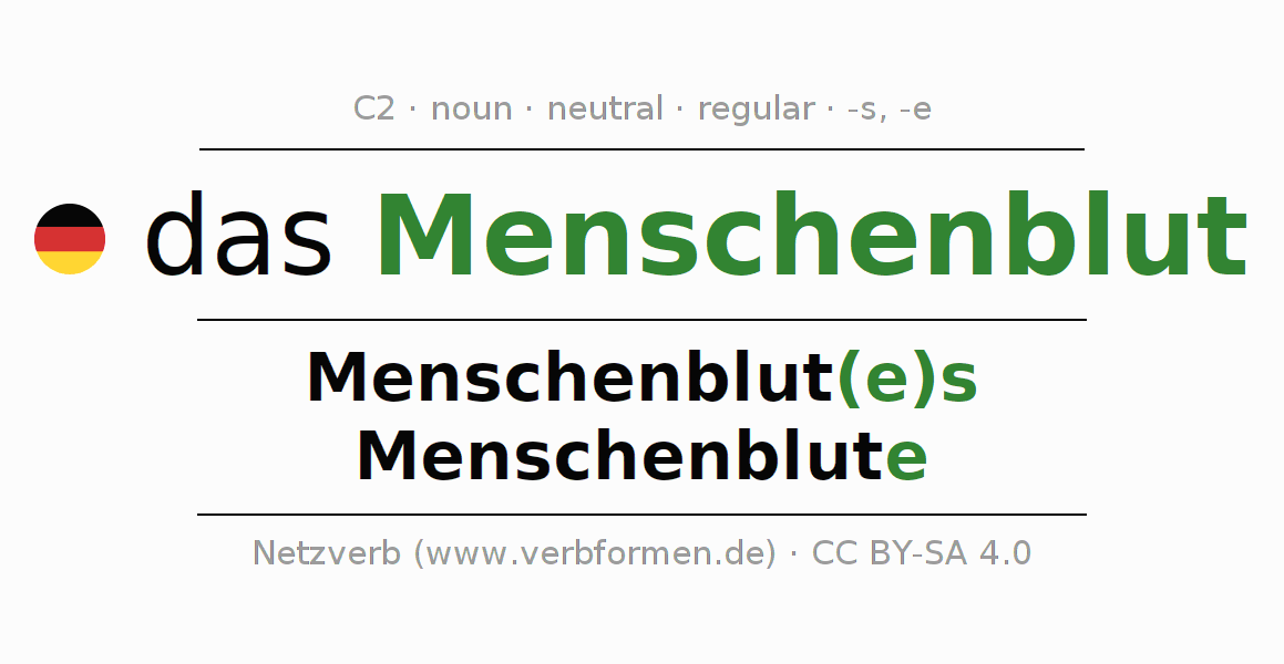 | Dat. | dem Menschenblut(e) | den Menschenbluten |
