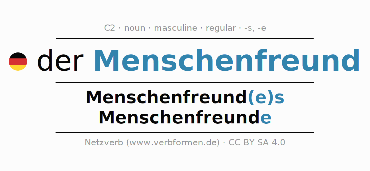 - Plural: die Menschenfreunde, der Menschenfreunde, den Menschenfreunden, die Menschenfreunde