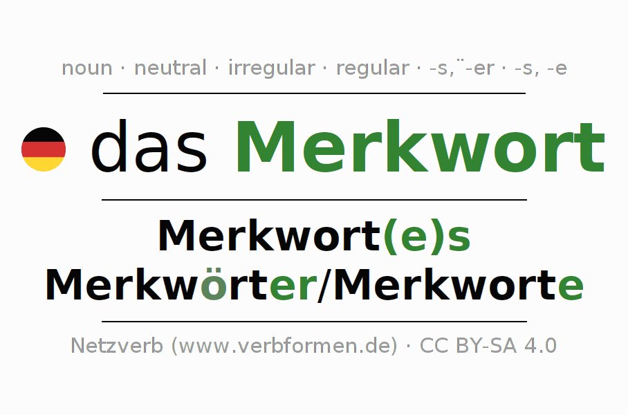 | Nom. | das Merkwort | die Merkwörter/Merkworte |
