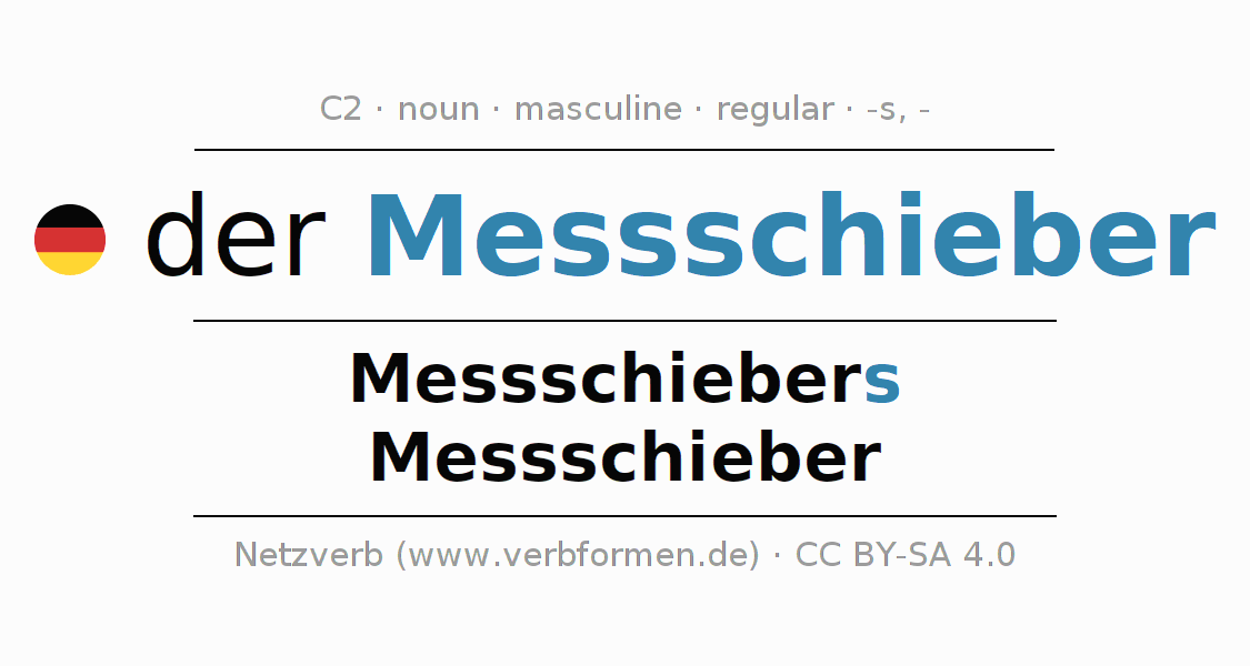 - Singular: der Messschieber, des Messschiebers, dem Messschieber, den Messschieber