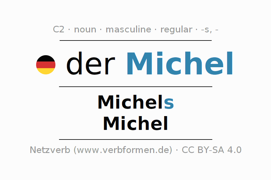 - Singular: der Michel, des Michels, dem Michel, den Michel