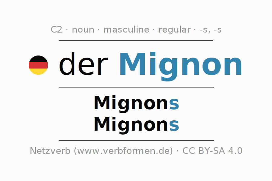 - Singular: der Mignon, des Mignons, dem Mignon, den Mignon