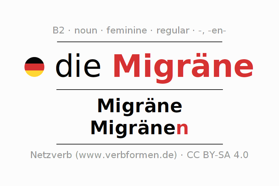 - Singular: die Migräne, der Migräne, der Migräne, die Migräne