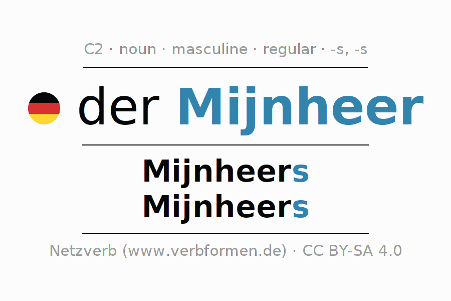 - Singular: der Mijnheer, des Mijnheers, dem Mijnheer, den Mijnheer