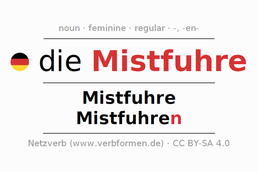 - Plural: die Mistfuhren, der Mistfuhren, den Mistfuhren, die Mistfuhren