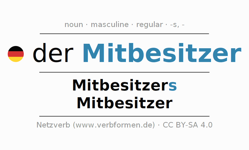 - Singular: der Mitbesitzer, des Mitbesitzers, dem Mitbesitzer, den Mitbesitzer