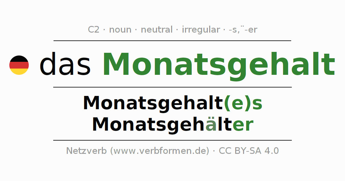 Nom. | das Monatsgehalt | die Monatsgehälter |
