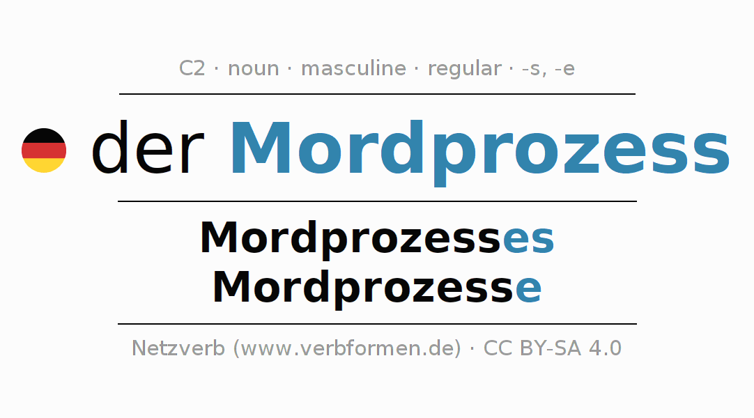 - Singular: der Mordprozess, des Mordprozesses, dem Mordprozess(e), den Mordprozess
