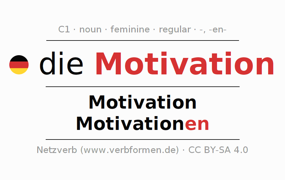 - Singular: die Motivation, der Motivation, der Motivation, die Motivation