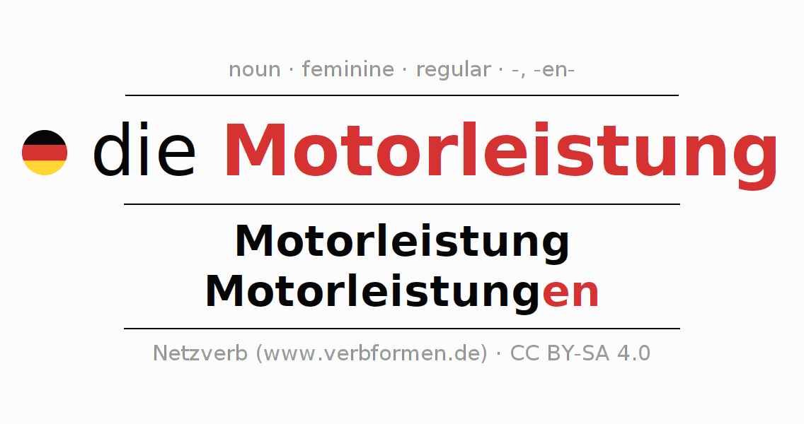 - Singular: die Motorleistung, der Motorleistung, der Motorleistung, die Motorleistung