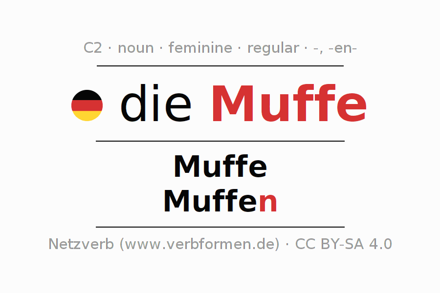 - Singular: die Muffe, der Muffe, der Muffe, die Muffe