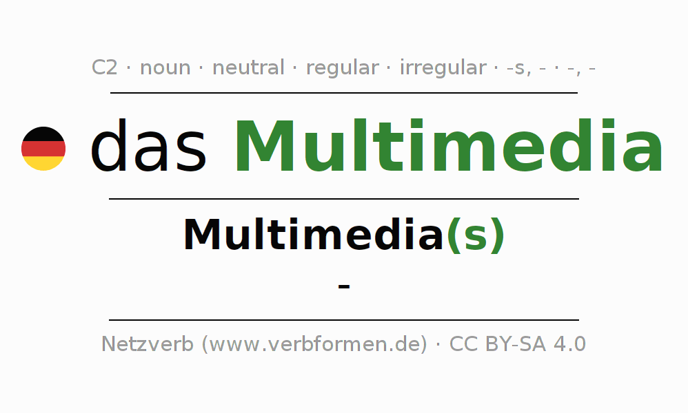 - Singular: das Multimedia, des Multimedia(s), dem Multimedia, das Multimedia