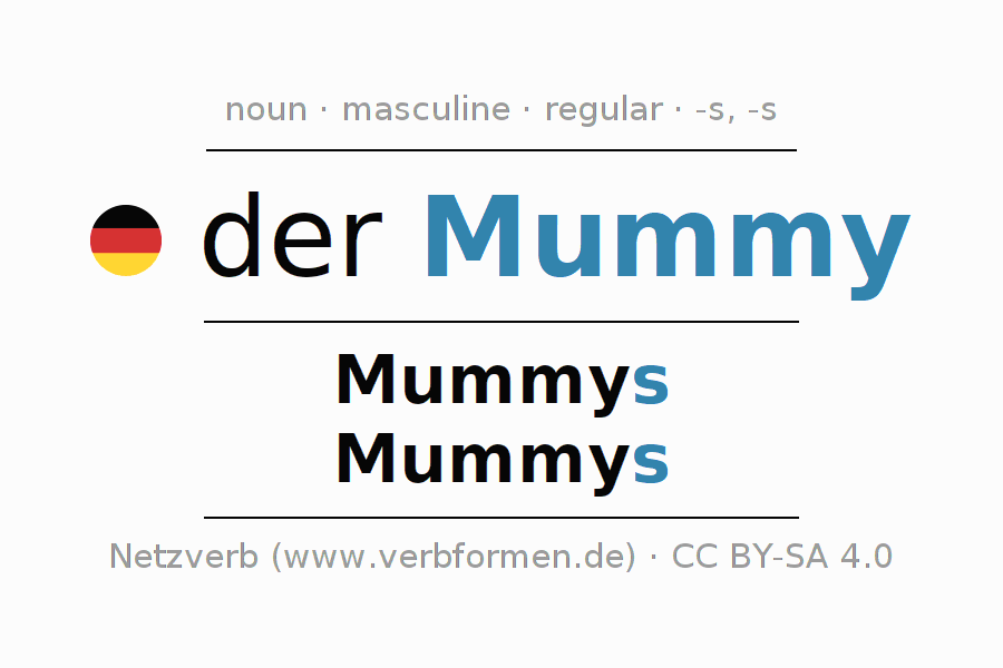 - Singular: der Mummy, des Mummys, dem Mummy, den Mummy