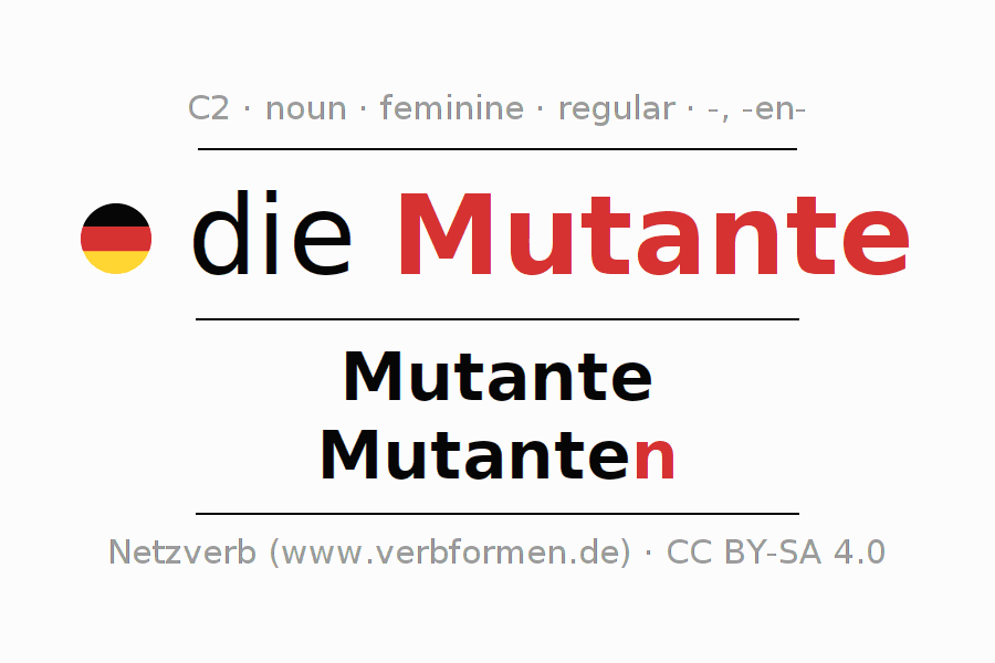 - Singular: die Mutante, der Mutante, der Mutante, die Mutante
