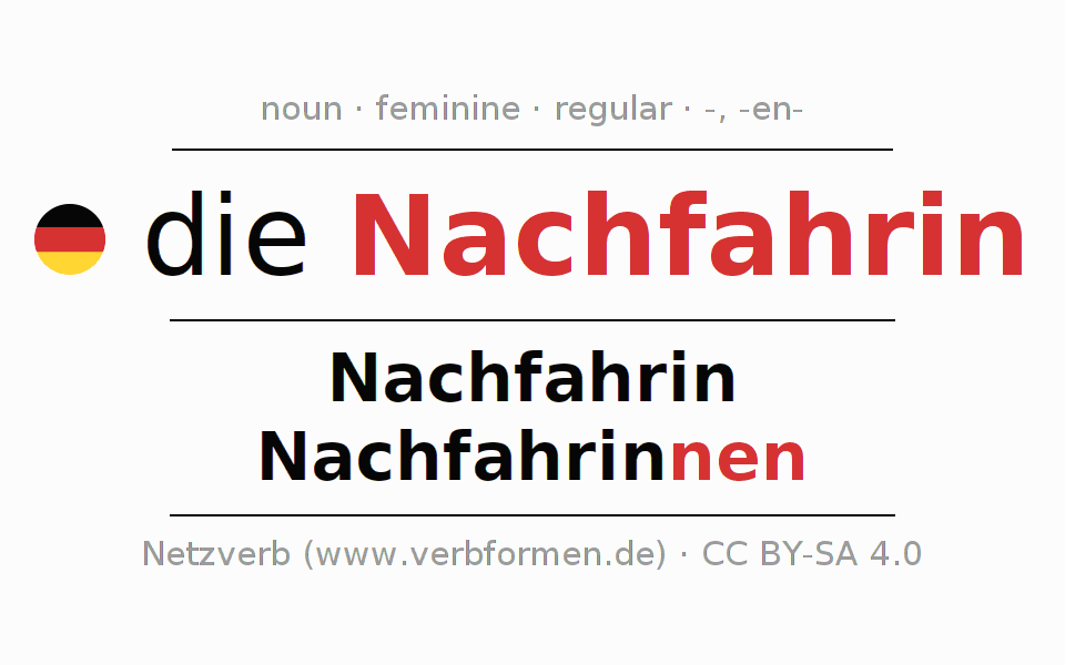 - Singular: die Nachfahrin, der Nachfahrin, der Nachfahrin, die Nachfahrin