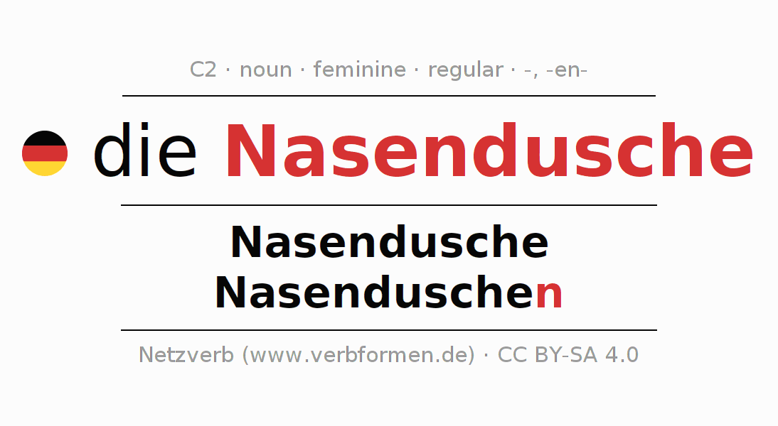 - Singular: die Nasendusche, der Nasendusche, der Nasendusche, die Nasendusche