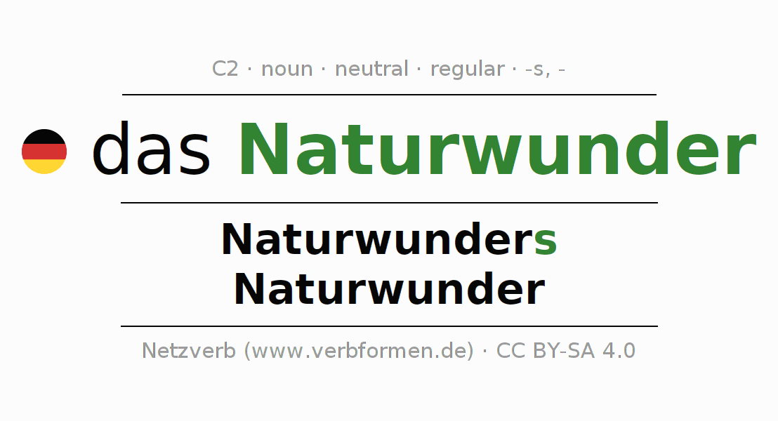 - Plural: die Naturwunder, der Naturwunder, den Naturwundern, die Naturwunder