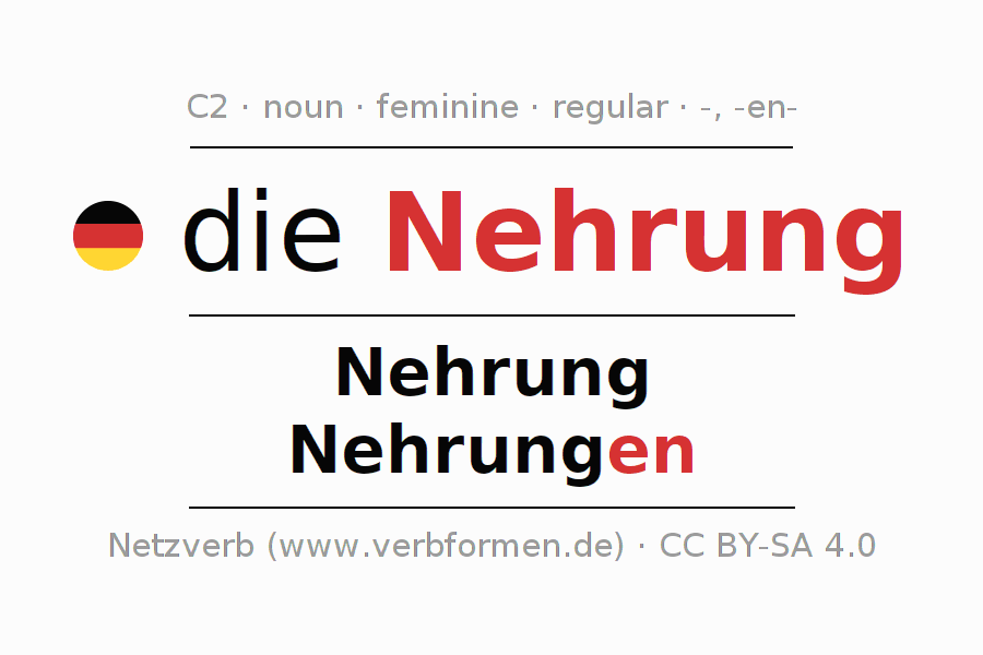 The declension of Nehrung as a table with all forms in singular (singular) and plural (plural) and in all four cases nominative (1st case), genitive (2nd case), dative (3rd case) and accusative (4th case). Especially for German learners the correct declension of the word Nehrung is crucial.