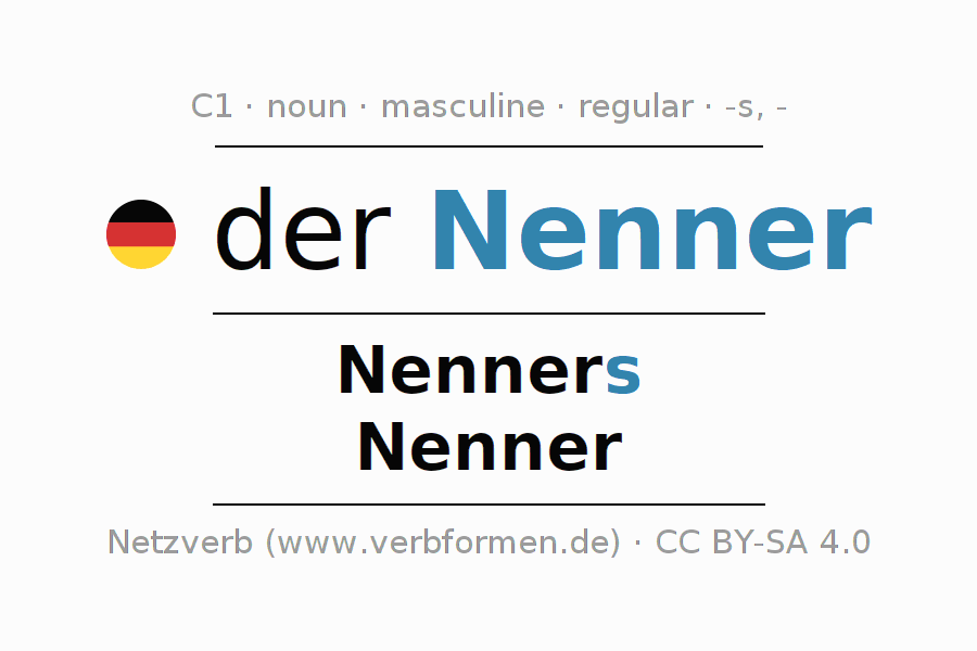 - Singular: der Nenner, des Nenners, dem Nenner, den Nenner