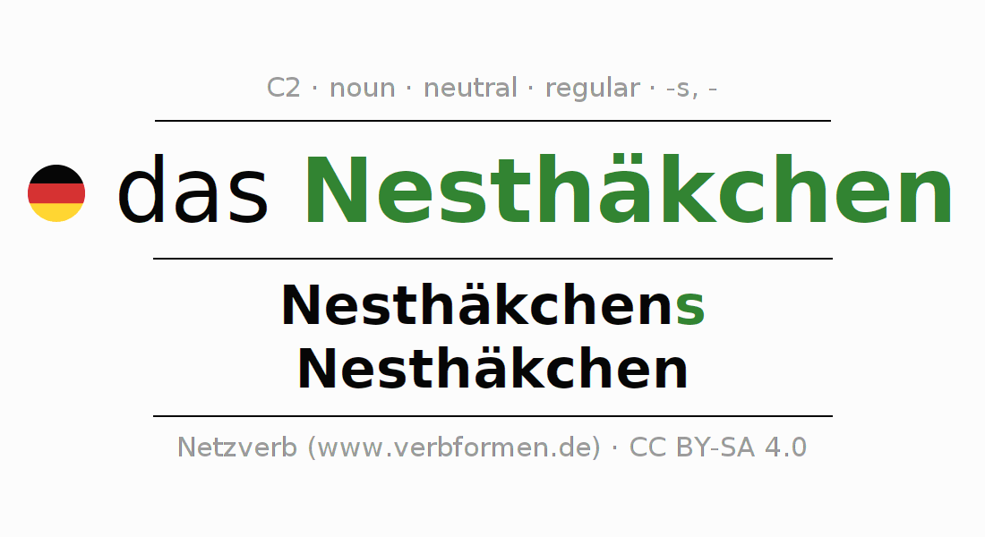 - Singular: das Nesthäkchen, des Nesthäkchens, dem Nesthäkchen, das Nesthäkchen