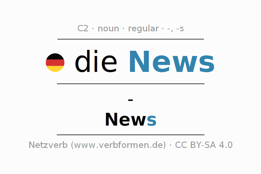 The declension of News as a table with all forms in singular (singular) and plural (plural) and in all four cases nominative (1st case), genitive (2nd case), dative (3rd case) and accusative (4th case). Especially for German learners the correct declension of the word News is crucial.