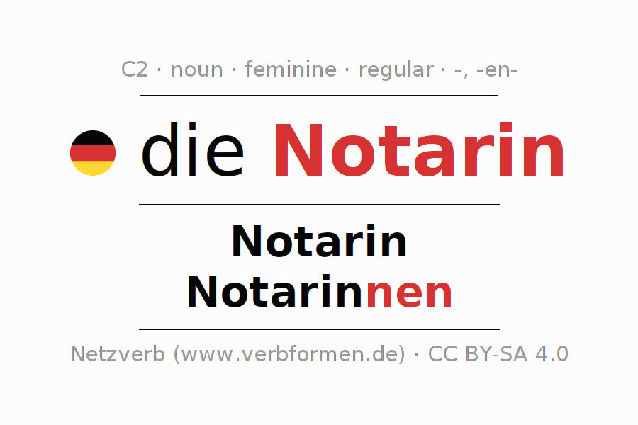 - Singular: die Notarin, der Notarin, der Notarin, die Notarin