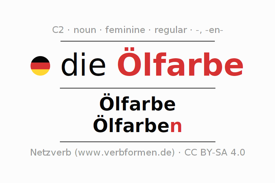 - Singular: die Ölfarbe, der Ölfarbe, der Ölfarbe, die Ölfarbe