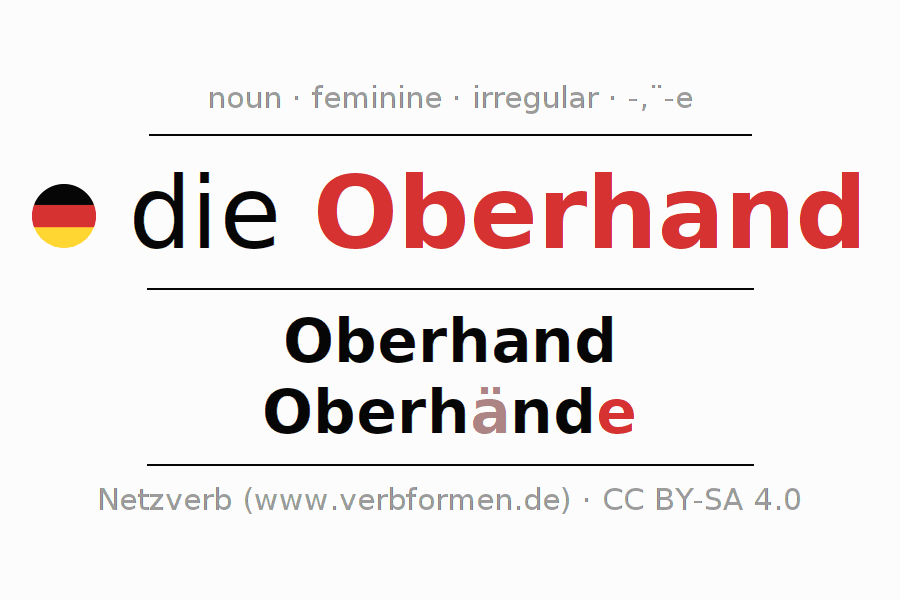 - Singular: die Oberhand, der Oberhand, der Oberhand, die Oberhand